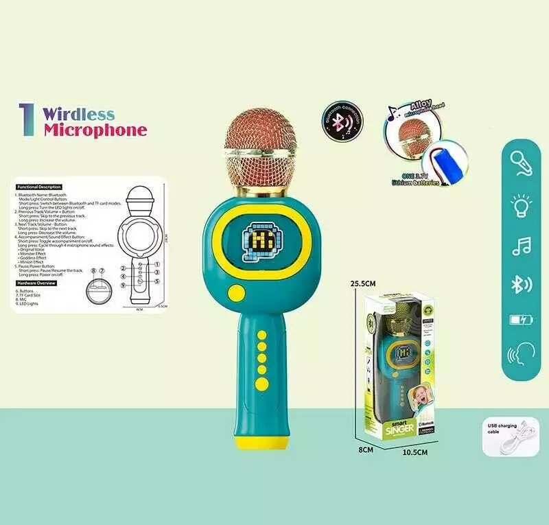 Мікрофон HY 865 E (96/2) підсвічування, 3 ефекти зміни голосу, регулювання гучності, Bluetooth, слот для TF-карти, в коробці