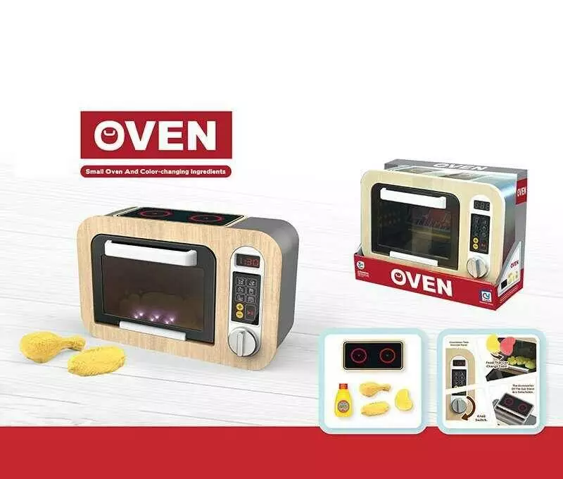 Мікрохвильова піч 818-502 A (18/2) дерев`яна, підсвічування, звуки, муляжі їжі, які змінюють колір, в коробці