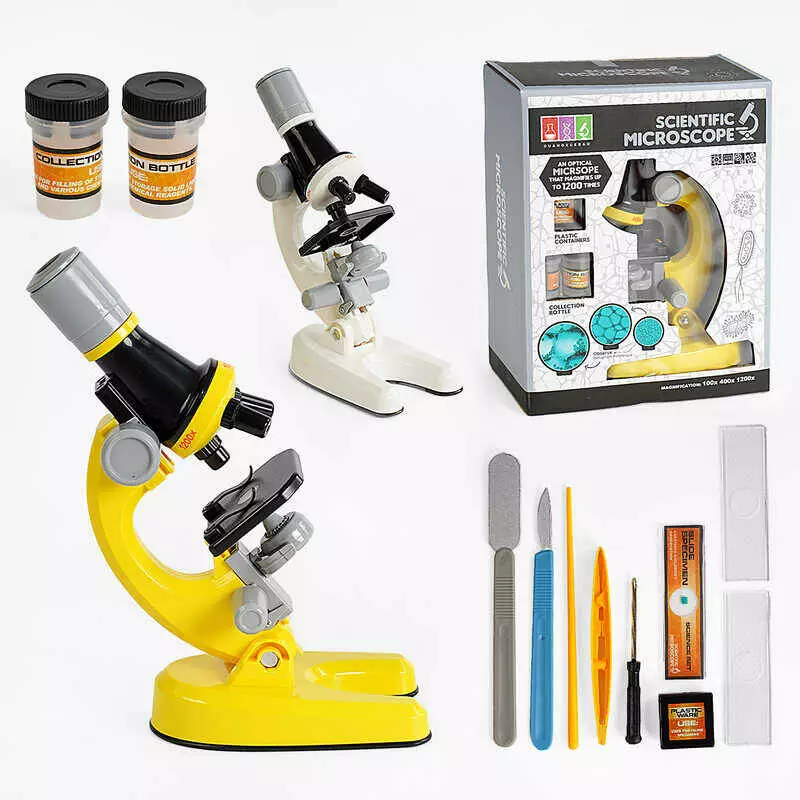 Мікроскоп 1012 A-1 (48/2) 2 кольори, підсвічування, скельця та пляшечки для зразків, інструменти, викрутка, інструменти, в коробці