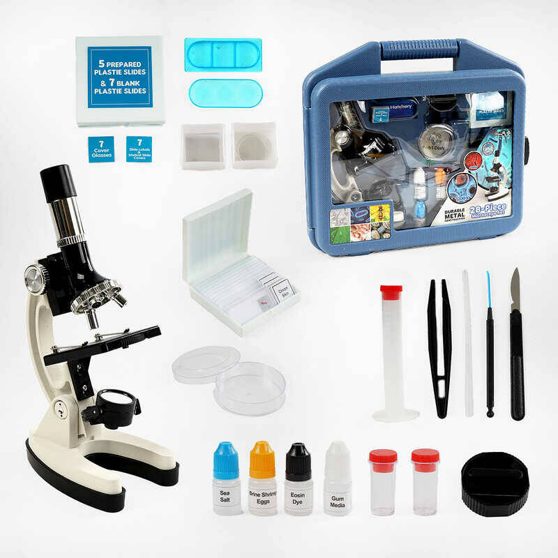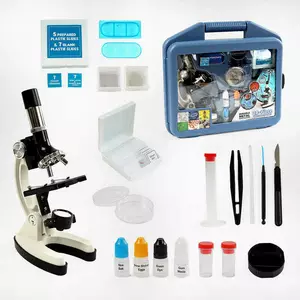 Мікроскоп 2110 Штрих=00313 (12/2) підсвічування, збільшення у 300, 600, 1200 разів, інструменти, слайди, колби, інструкція, у валізі