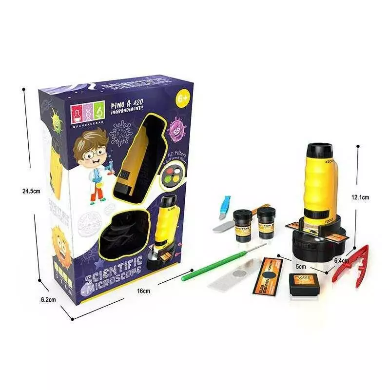Мікроскоп 2120 A-1 (72/2)розмір: 5х6.4х12.1 см, підсвічування, 120х збільшення, підсвічування, фокусування, колби, скельця, інструменти, в коробці