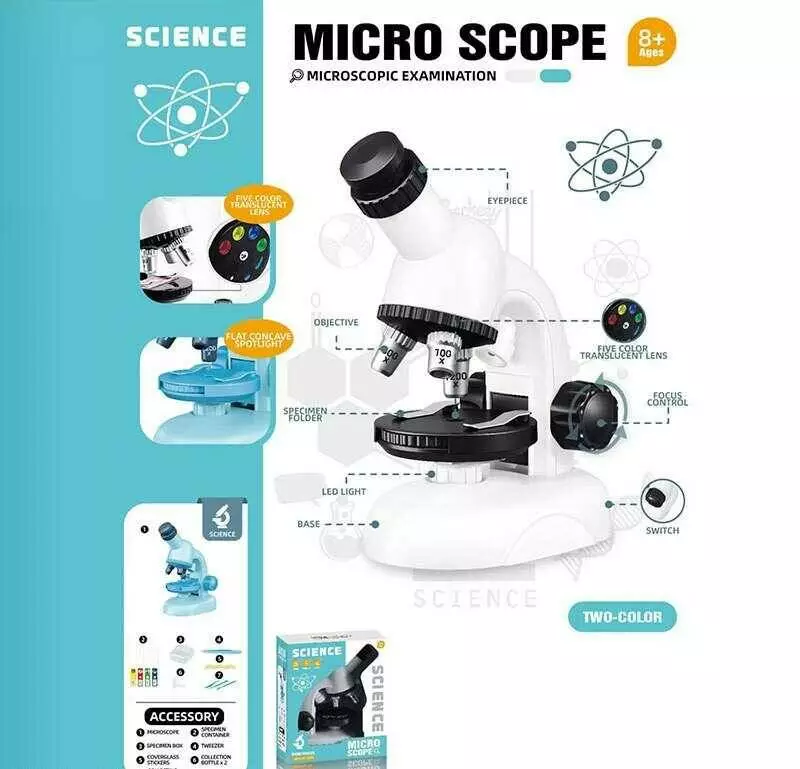 Мікроскоп 2503 A (48) збільшення 100х, 200х та 600х, інструменти, зразки, баночки, підсвічування, в коробці