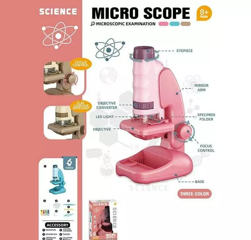 Мікроскоп 2507 A (72) 3 кольори, збільшення 60х та 180х, інструменти, скельця, підсвічування, на батарейках, в коробці, ВИДАЄТЬСЯ ТІЛЬКИ МІКС ВИДІВ