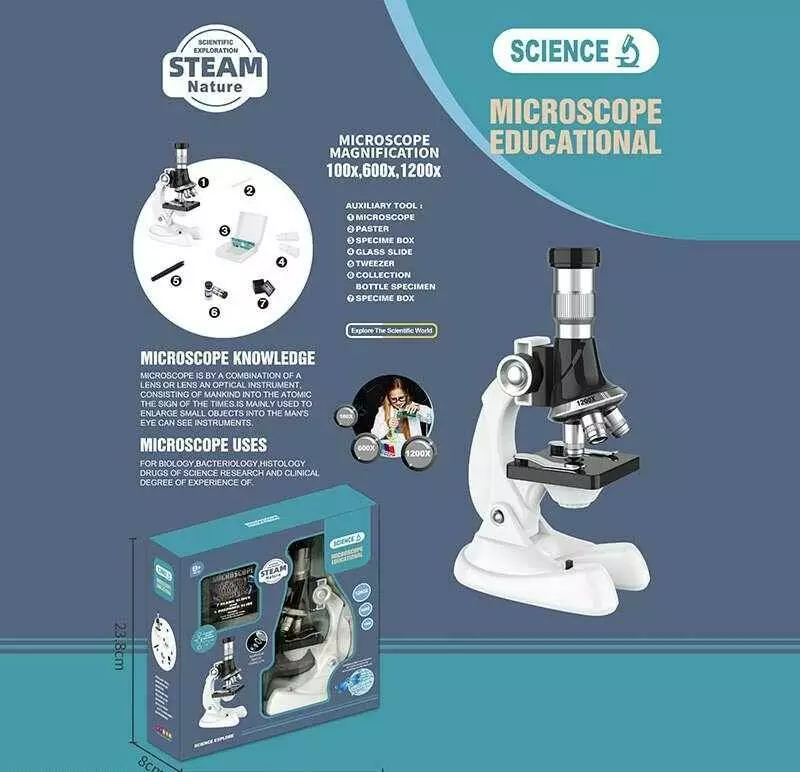 Мікроскоп 3303 (60) збільшення 100х, 600х та 1200х, інструменти, зразок, скельця, підсвічування, в коробці