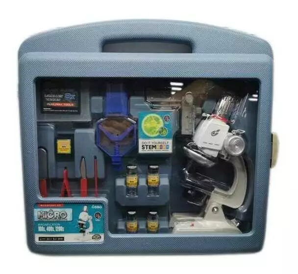 Мікроскоп BG 020 (8) металопластик, підсвічування, від батарейок, підставка для телефона, інструменти, аксесуари, у валізі