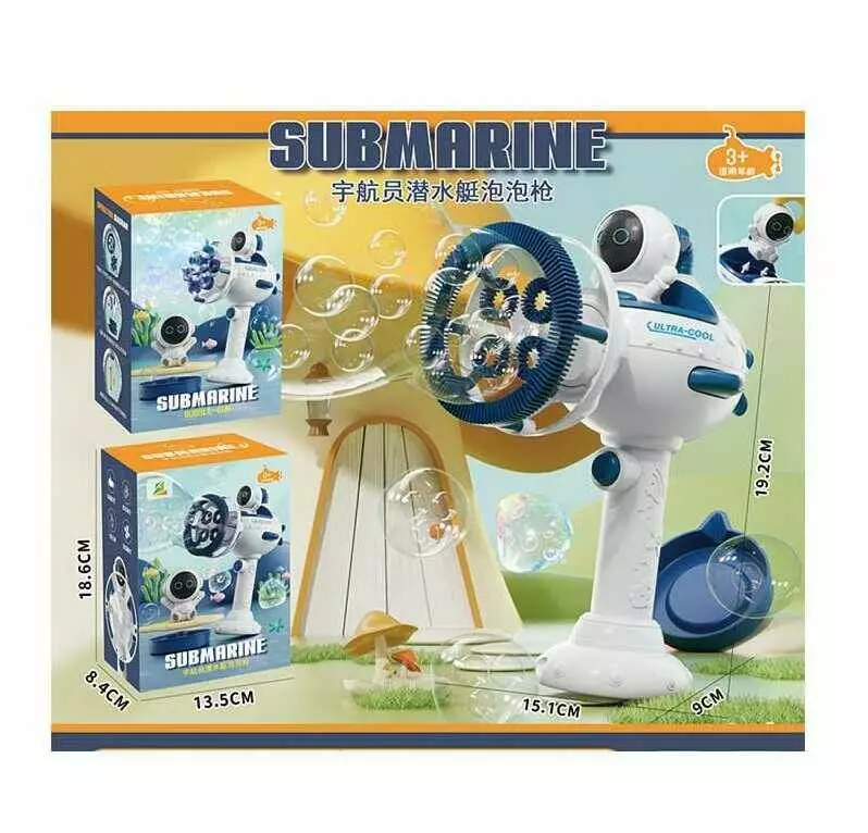 Пістолет з мильними бульбашками 636-72 (96) автоматичний принцип роботи, на батарейках, таця, 2 насадки, 2 пляшечки з мильним розчином, в коробці