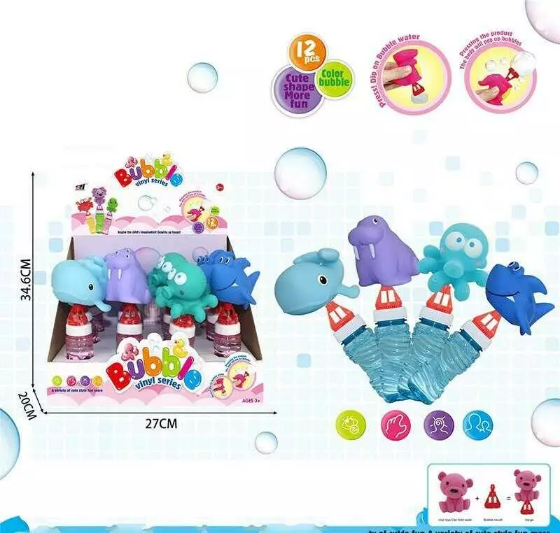 Мильні бульбашки SDH 302-17 (16/2) ЦІНА ЗА 12 ШТУК В БЛОЦІ, гумові тваринки, в коробці