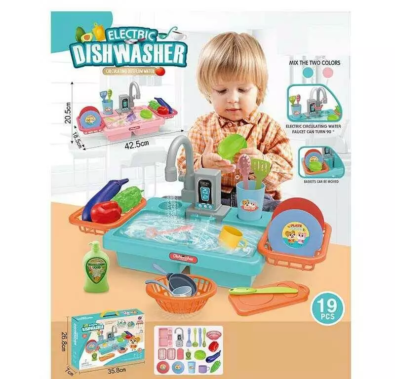 Мийка 2016-142 (36/2) автоматична подача води, 19 аксесуарів, кран повертається на 90 градусів, склянки, тарілки, столове приладдя, овочі, в коробці