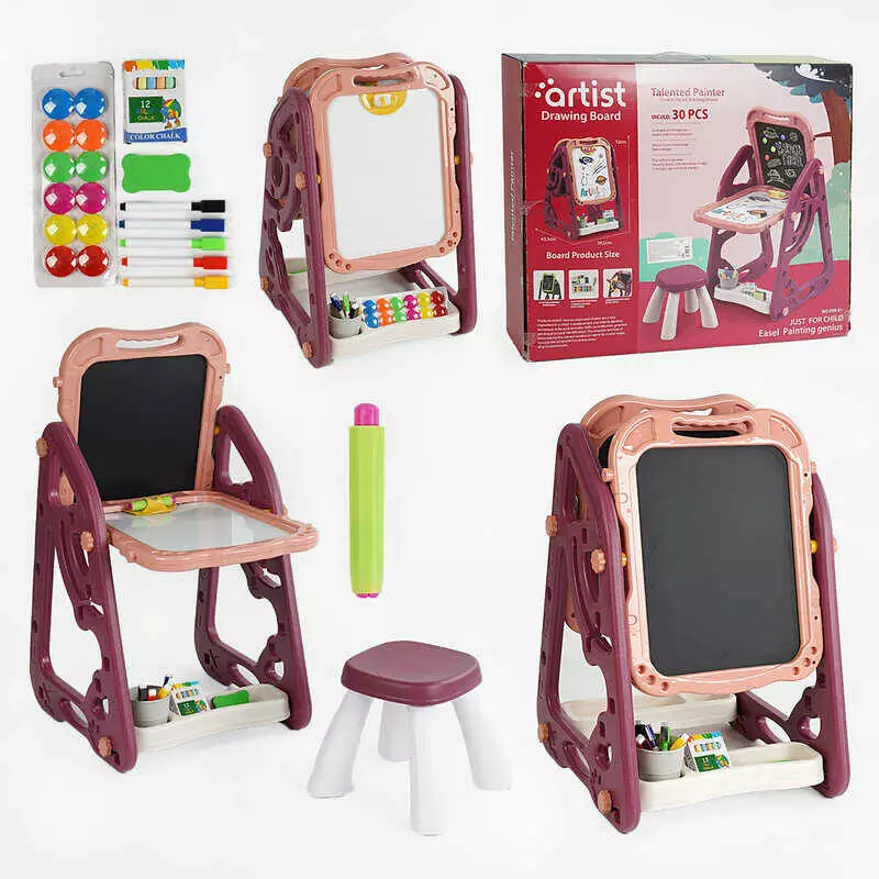 Мольберт 050-31 (10) 2 дошки: для маркерів та крейди, стільчик, приладдя для малювання, в коробці