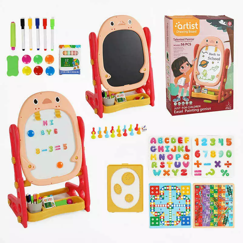 Мольберт 050-54 (18) двосторонній, крейда, маркери, стиранка, магніти, настільні ігри, фішки, в коробці