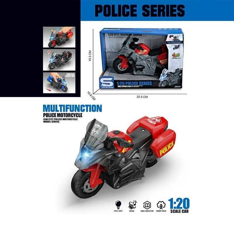 Мотоцикл JS 196 C (72/2) "Поліція", світло, звук, інерція, кермо повертається, масштаб 1:20, в коробці