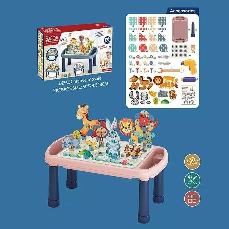Мозаїка 636-10 B (24) 339 деталей, таця, столик, електрична викрутка, інструменти, картонні елементи, інструкція, в коробці