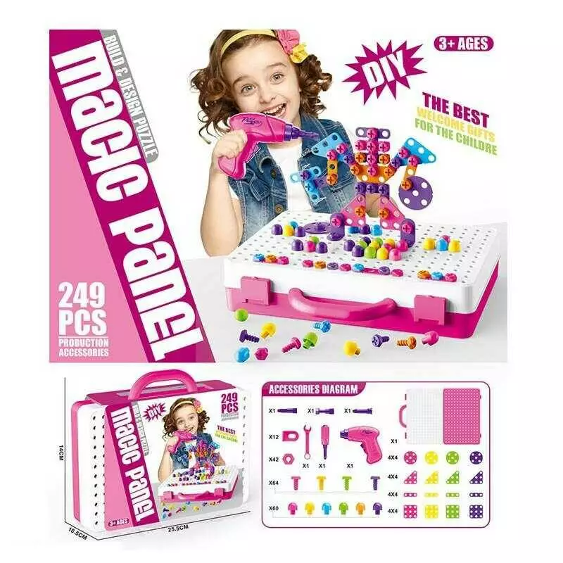 Мозаїка 666-52 (36/2) 249 елементів, електричний шуруповерт, гайковий ключ, викрутка, у валізі