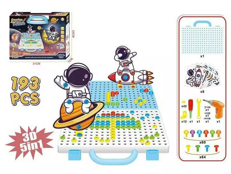 Мозаїка 666-60 (36/2) "Космос", 193 елементи, шуруповерт на батарейках, гайковий ключ, викрутка, в коробці