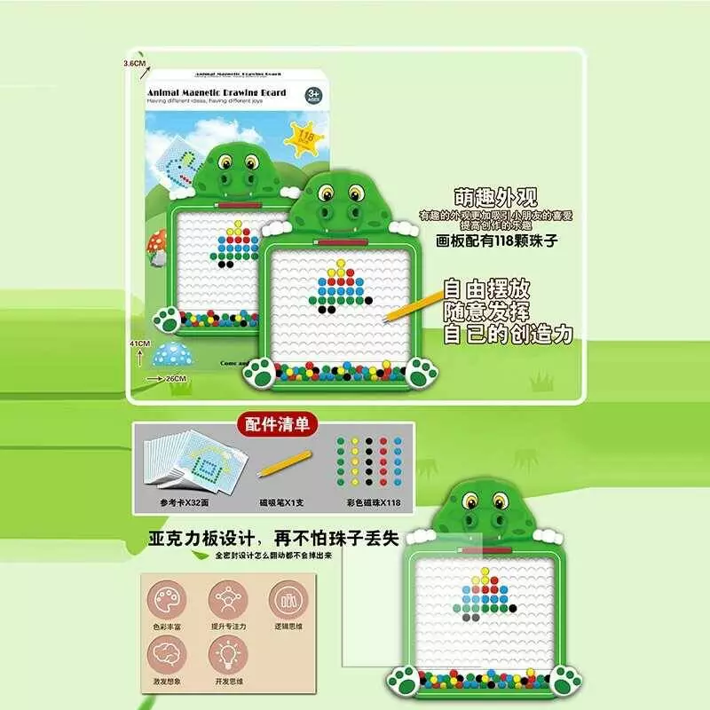 Мозаїка W 6510 (60) магнітна, стилус, кольорові кульки, 16 двосторонніх карток із завданнями, розмір - 25х2.5х40 см, у коробці