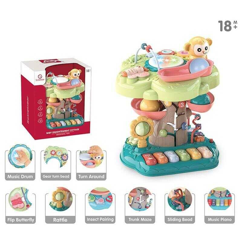 Музична гра YL 605 A (8) “Чарівне дерево”, звук, підсвічування, мелодії, пальчикові лабіринти, кульки, піаніно, шестерні, брязкальце, в коробці
