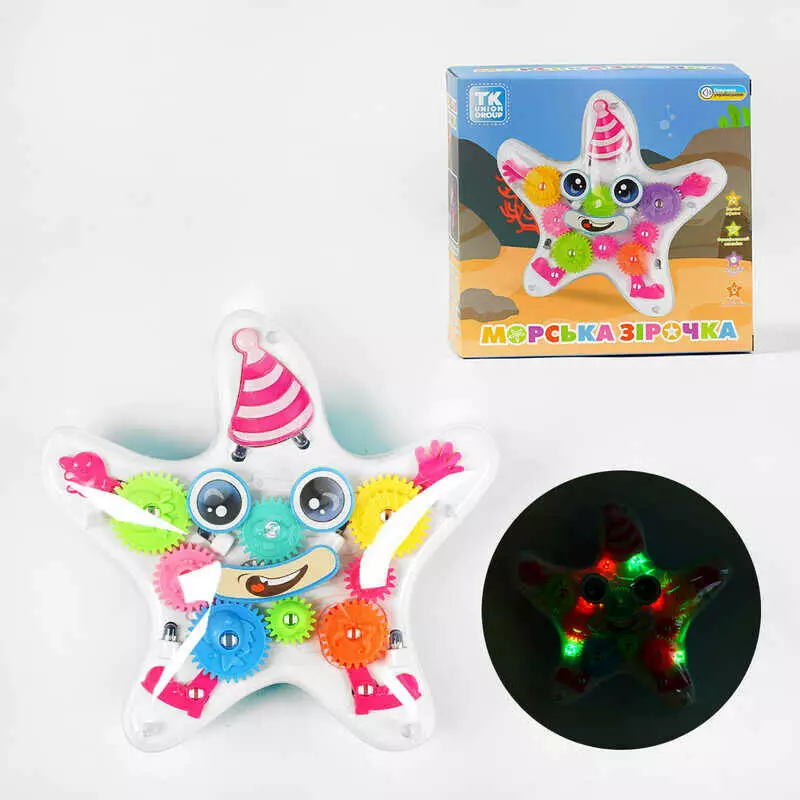 Музична іграшка "Морська зірочка" TK - 21203 (48) "TK Group", ОЗВУЧУВАННЯ УКРАЇНСЬКОЮ МОВОЮ, підсвічування, колесо вільного ходу, шестерні, в коробці