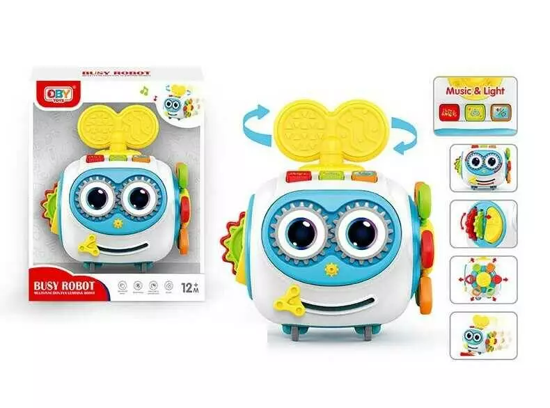 Музична іграшка O 18300 (72/2) звуки,підсвічування,регулювання гучності, на батарейках, тріскачка, рухомі елементи, гумові мотузочки,колеса, в коробці