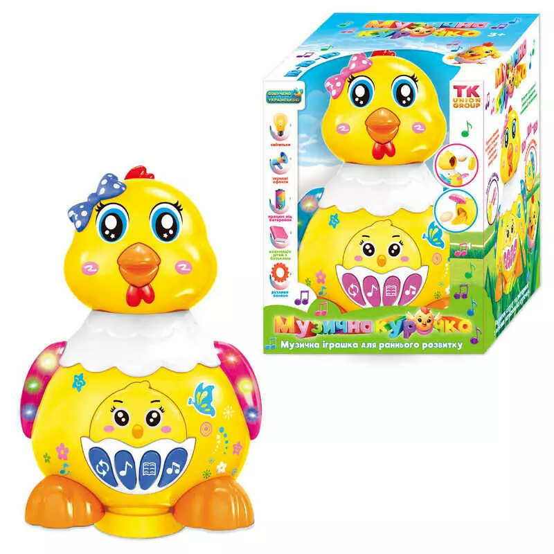 Музична курочка 61849 (24) "TK Group", ОЗВУЧУВАННЯ УКР. МОВОЮ, пісні, казки, мелодії, несе яйця, колесо вільного ходу, підсвічування, в коробці