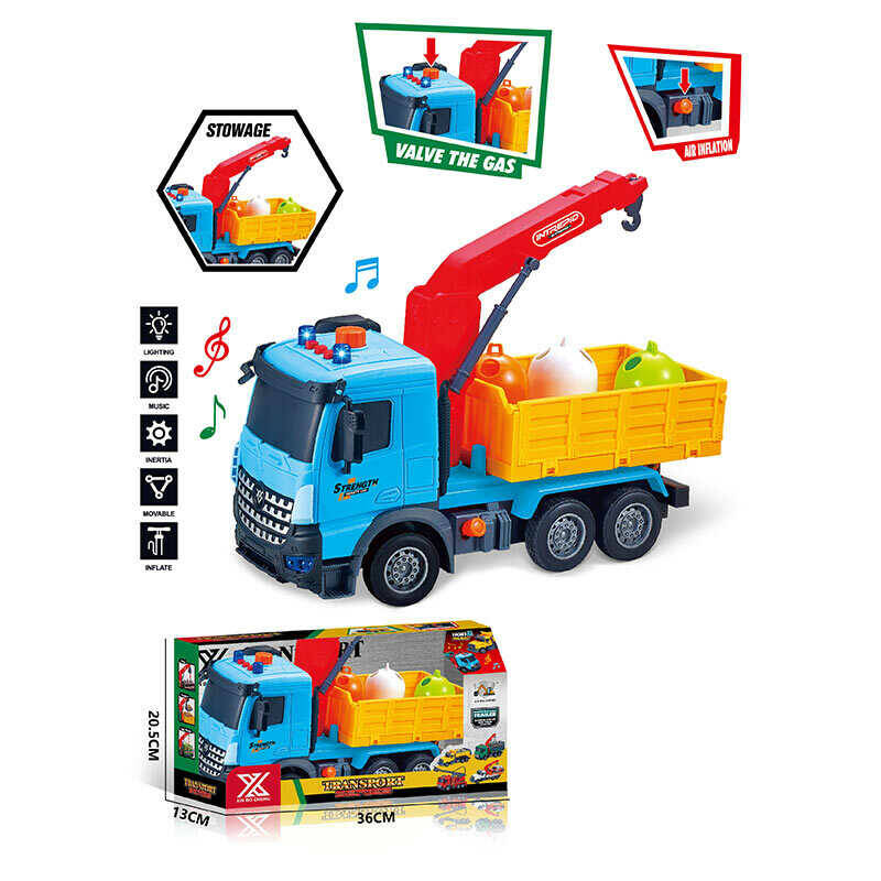 Спецтехніка 688-10 A (24) “Вантажівка з краном”, довжина 29 см, світло, звук, інерція, гумові колеса, висувна стріла, сміттєві баки, в коробці