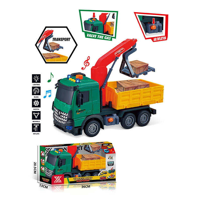 Спецтехніка 688-10 C (24) “Вантажівка з підйомником”, довжина 28 см, підсвічування, звукові ефекти, інерція, гумові колеса, висувна стріла, в коробці