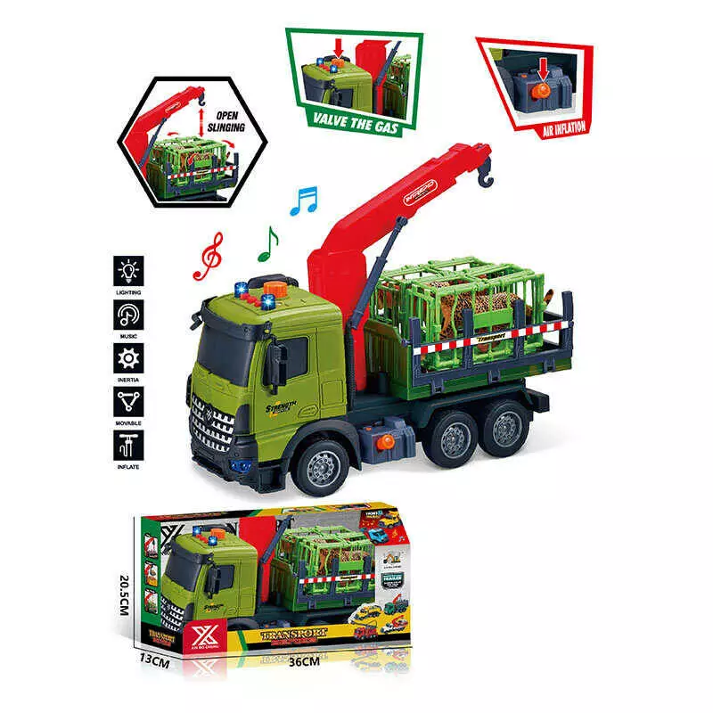 Спецтехніка 688-11 B (24) “Вантажівка з краном”, довжина 28 см, світло, звук, інерція, гумові колеса, висувна стріла, 2 тварини, 2 клітки, в коробці