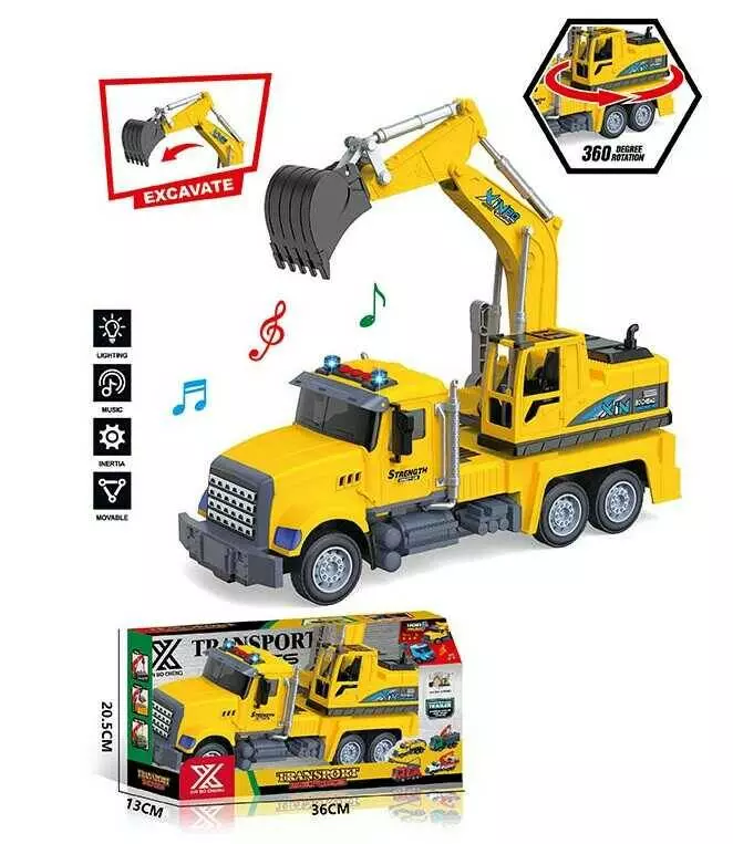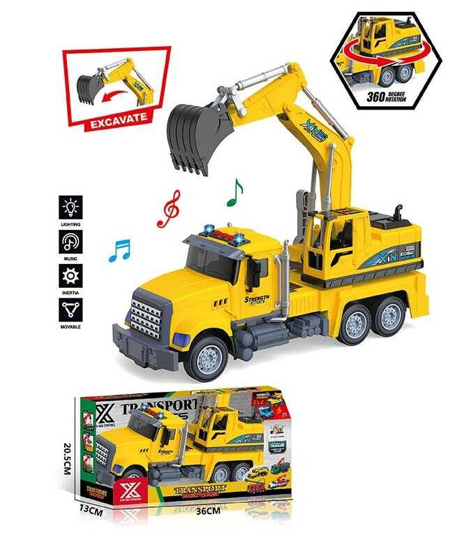Спецтехніка 688-2 A (24) “Екскаватор”, довжина 32 см, світло, звук, інерція, гумові колеса, платформа обертається, мех. підіймання ковша, в коробці