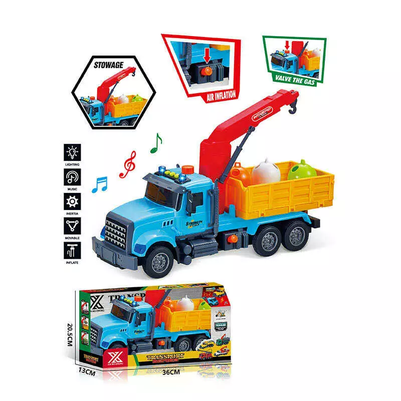Спецтехніка 688-4 C (24) “Вантажівка з краном”, довжина 32 см, світло, звук, інерція, гумові колеса, висувна стріла, рухомі деталі, в коробці