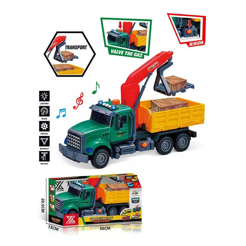 Спецтехніка 688-5 B (24) “Вантажівка з підйомником”, довжина 33 см, світло, звук, інерція, гумові колеса, висувна стріла, рухомі дет., в коробці