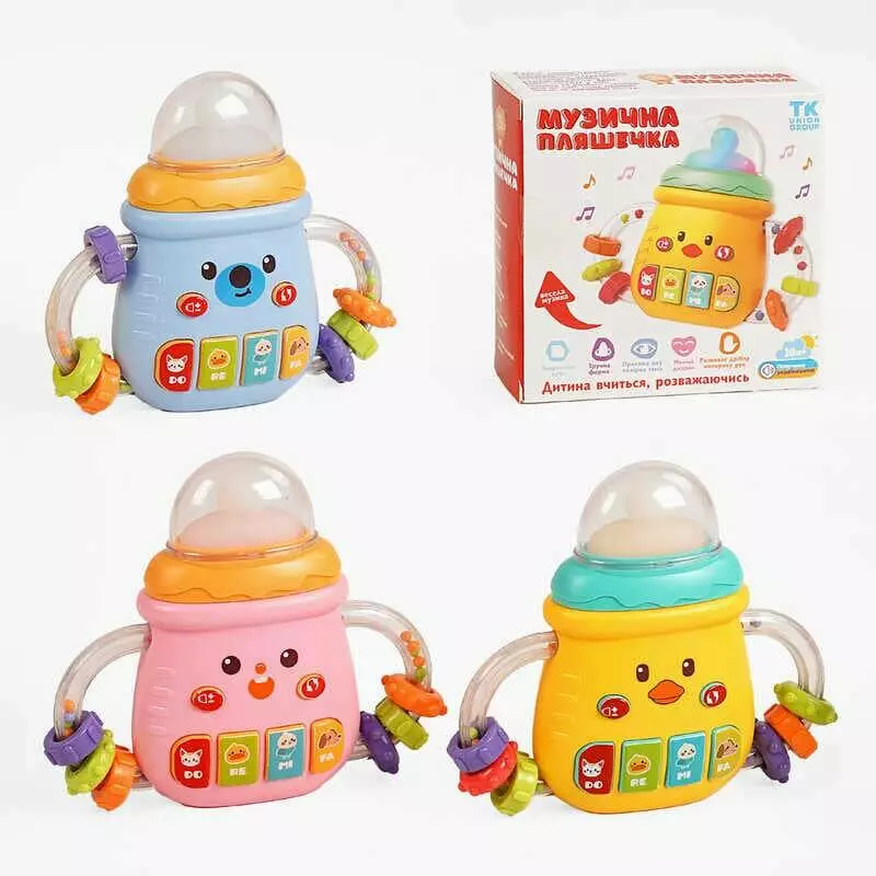 Музична пляшечка 88065 (180/2) "TK Group", ОЗВУЧУВАННЯ УКРАЇНСЬКОЮ МОВОЮ, пісні, казки, вірші, назви тварин, ноти, пальчикова гра, підсвіч., в коробці