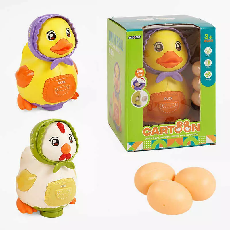 Музична пташка M 06 A (48) 2 кольори, підсвічування, пісні англійською, несе яйця, колесо вільного руху, від батарейок, в коробці
