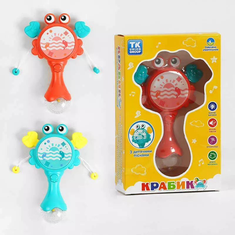 Музичне брязкальце "Крабик" ТК 82855 (108) "TK Group", ОЗВУЧУВАННЯ УКРАЇНСЬКОЮ МОВОЮ, світло, диско-куля, звук, мелодії, брязкальце, прорізувач, колот