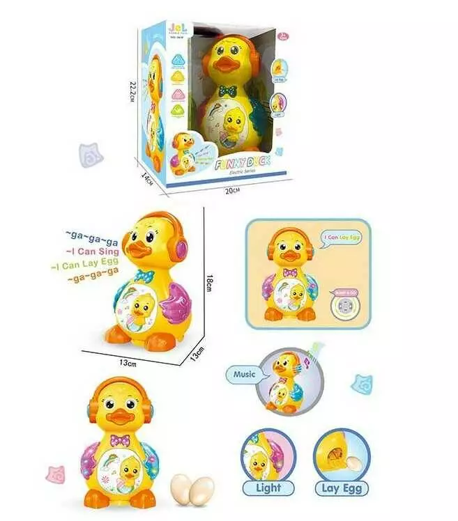 Музичне каченя 0619 (40/2) підсвічування, пісенька англійською, колесо вільного ходу, несе яйця, в коробці