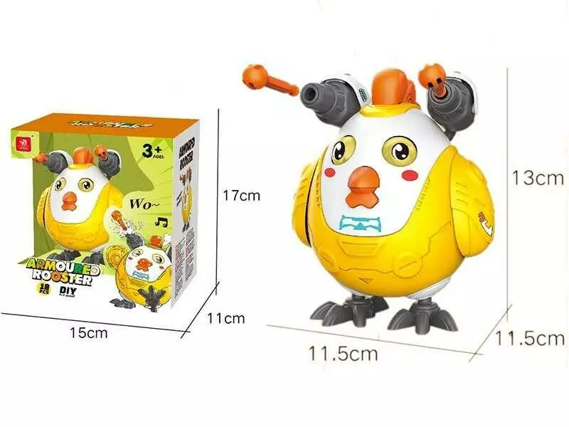 Музичне курчатко ECXP 2204 (24) підсвічування, звук, рухає крилами, стріляє, механічний принцип, від батарейок, конструктор, в коробці
