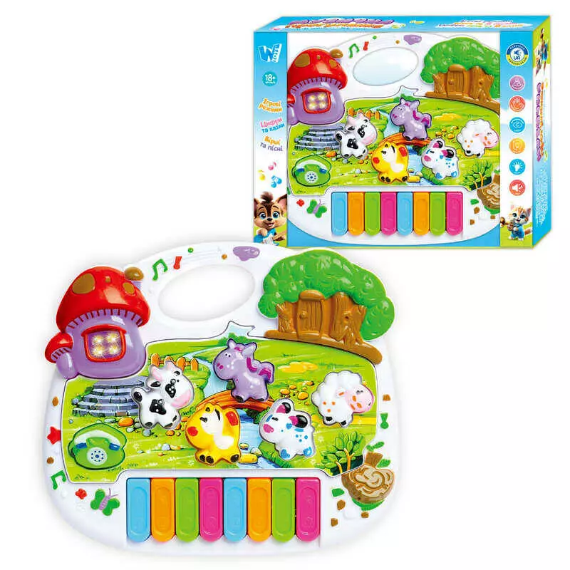 Музичне піаніно 18126 (96/2) "WToys", ОЗВУЧУВАННЯ УКР МОВОЮ, пісні, казки, цифри, звуки тварин, підсвічування, в коробці