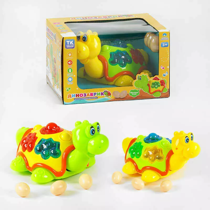 Музичний динозаврик TK - 50633 (48/2) "TK Group", 2 кольори, ОЗВУЧУВАННЯ УКРАЇНСЬКОЮ МОВОЮ, світло, колесо вільного руху, пісня, яйця, в коробці