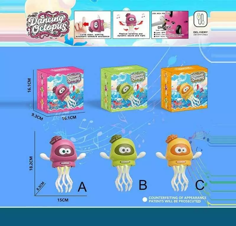 Музичний кальмар 726 (60) підсвічування, режими: з мелодією/без неї, танцює, їздить, уникає перешкод, вбудований акумулятор, в коробці, МІКС ВИДІВ