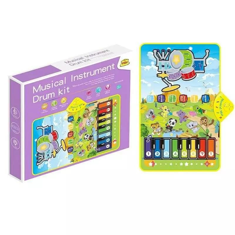 Музичний килимок YQ 3228 (24) звук, підсвітка, барабани, піаніно, режими гучності, на батарейках, музичні інструменти, в коробці
