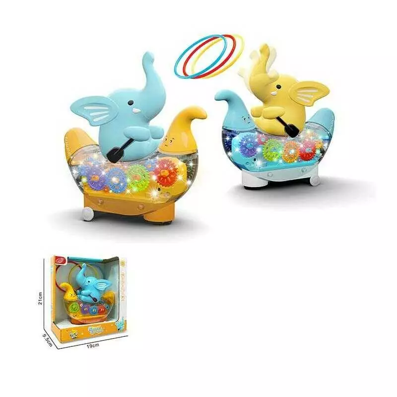 Музичний слоник HD 9055 (48/2) 2 види, підсвічування, пісня англ. мовою, колесо вільного ходу, 3 кільця, обертові шестерні, в коробці