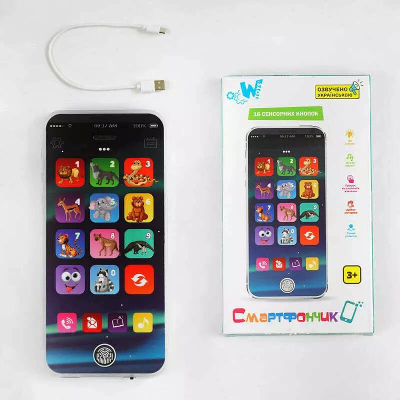 Музичний телефон TK - 11206 (60) "WToys", ОЗВУЧ. УКР. МОВОЮ, 16 сенсорних кнопок, світло, вірші, цифри, скоромовки, тварини, звуки, в коробці