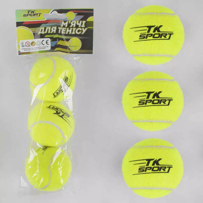 М`яч тенісний C 40193 (80) "TK Sport", 3штуки, d = 6см, в пакеті