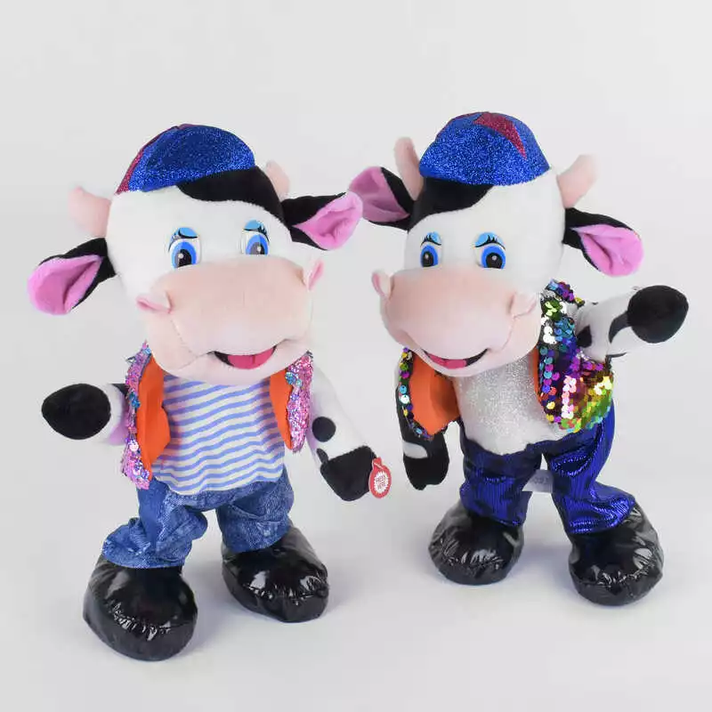 Мягкая игрушка C 43993 (72) "Бычок", 2 вида, на батарейках, высота 29 см, песни на иностранном и русском языке, в пакете