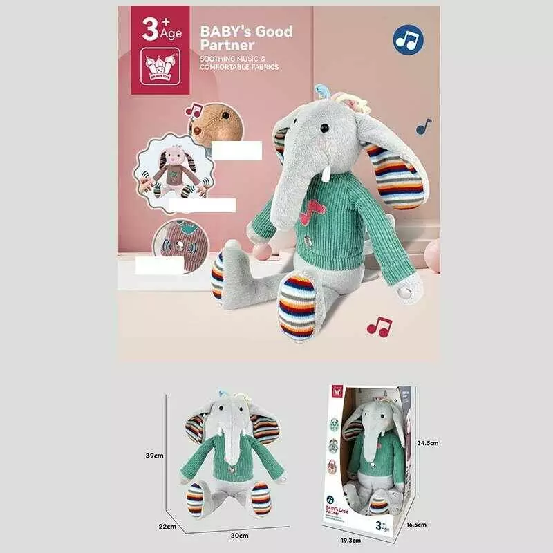 М`яка інтерактивна іграшка 330 K-O (24) “Слоник”, підсвічування, звуки, мелодії, фрази англійською, музика, в коробці