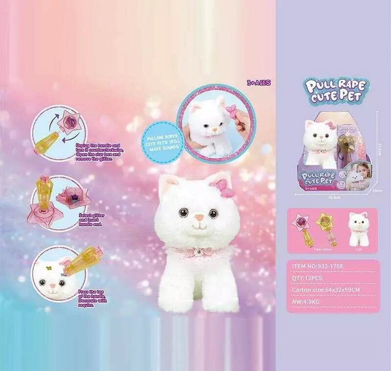 М’яка іграшка 933-176 E (12) “Кошеня”, висота: 18 см, механічна паличка, звуки, вібрує, в коробці