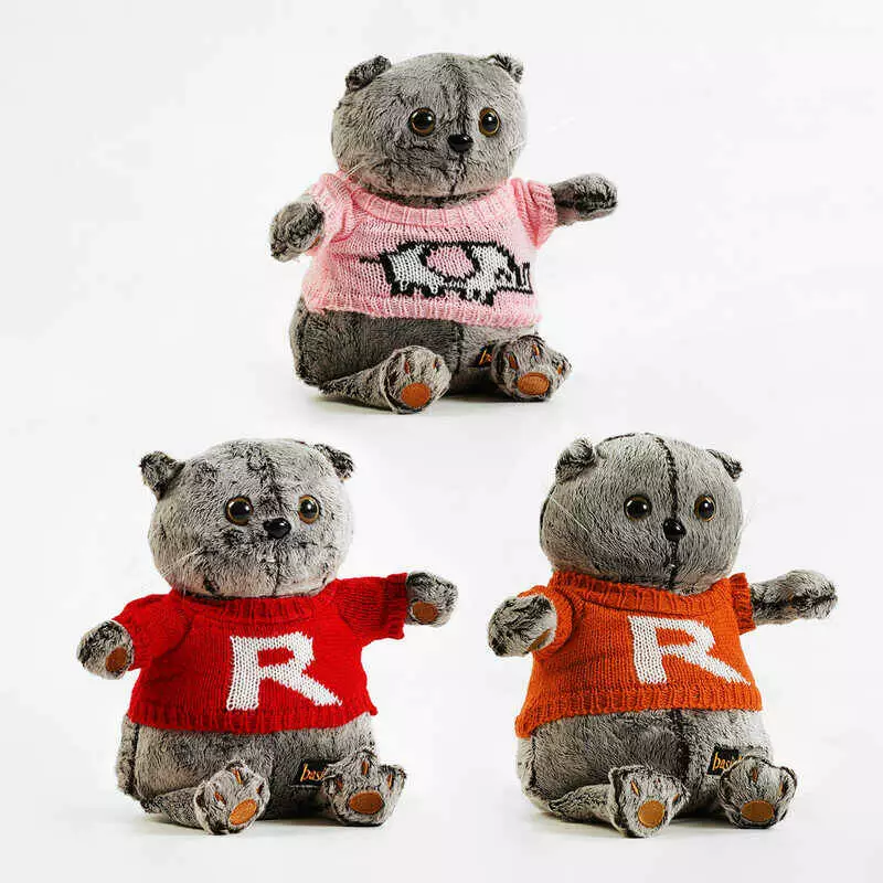 М`яка іграшка M 16177 (150) 3 види, кіт у светрі, висота 31 см, ВИДАЄТЬСЯ ТІЛЬКИ МІКС ВИДІВ
