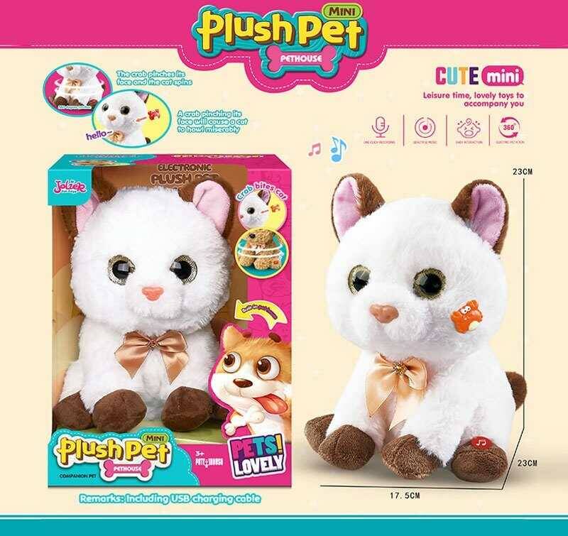 М`яка інтерактивна іграшка MC 1091 (24) “Котик”, окастик, музика, рухається, повторюшка, магнітний крабик, USB-кабель, вбудований акумулятор 3.7V, в к