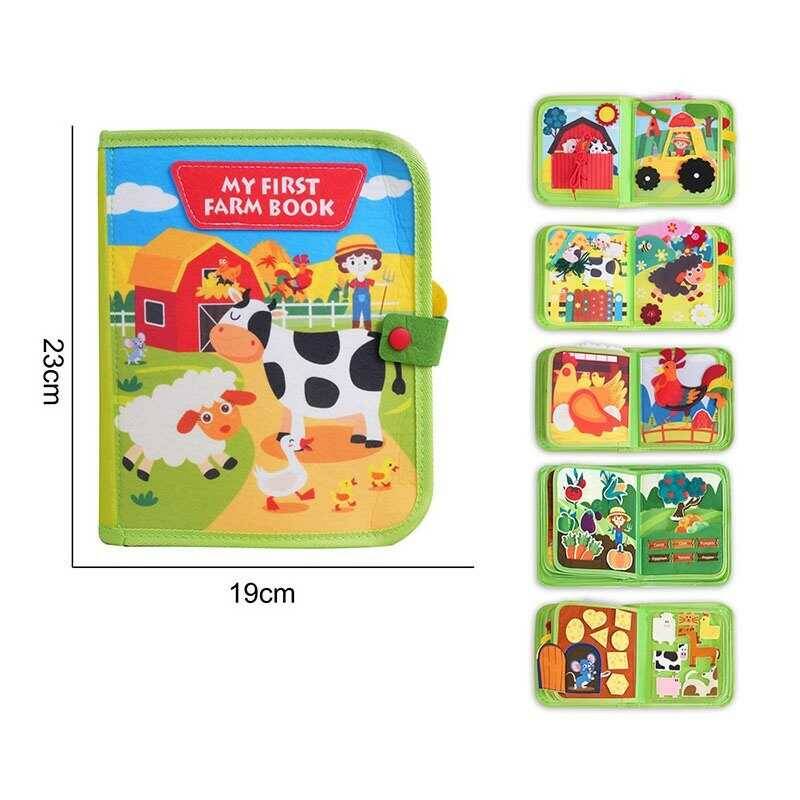 М`яка книжка-бізіборд 25008 (35) "Ферма", фетр, пальчикові ігри, пискавка, елементи на липучках, назви англійською мовою, в пакеті
