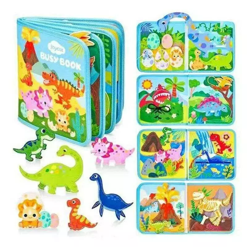 М`яка книжка-бізіборд 25009 (35) "Динозаври", фетр, пальчикові ігри, шнурівка, елементи на липучках, в пакеті
