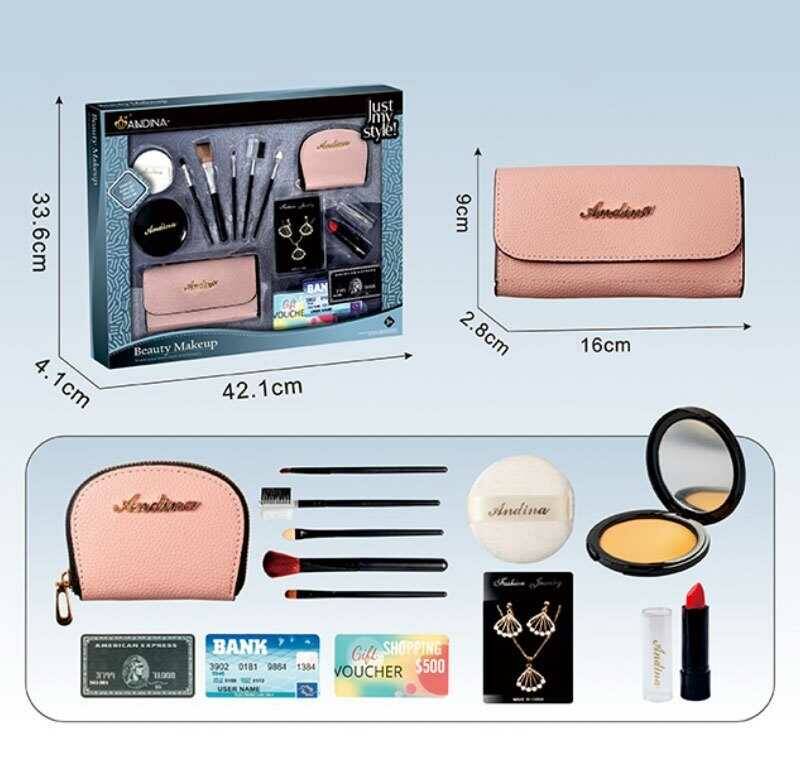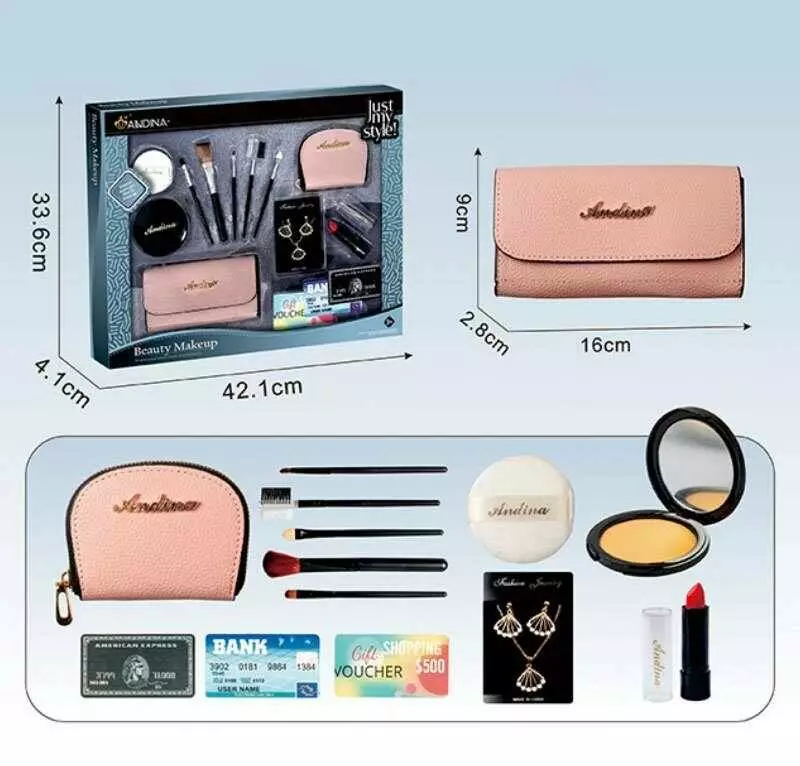 Набір аксесуарів 636-4 (48) гаманець, набір пензлів для макіяжу, аксесуари, імітація косметики, банківські картки для гри, в коробці