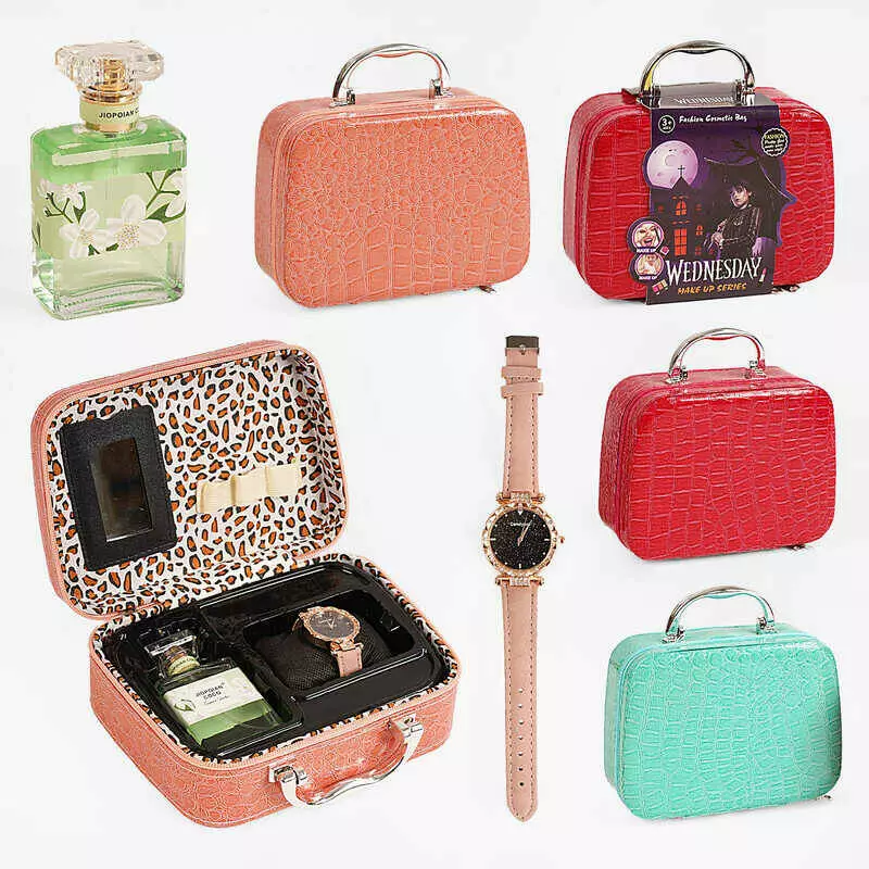 Набір аксесуарів 768-47 (60/2) 3 кольори, наручний годинник, парфуми, у валізі, ВИДАЄТЬСЯ МІКС ВИДІВ